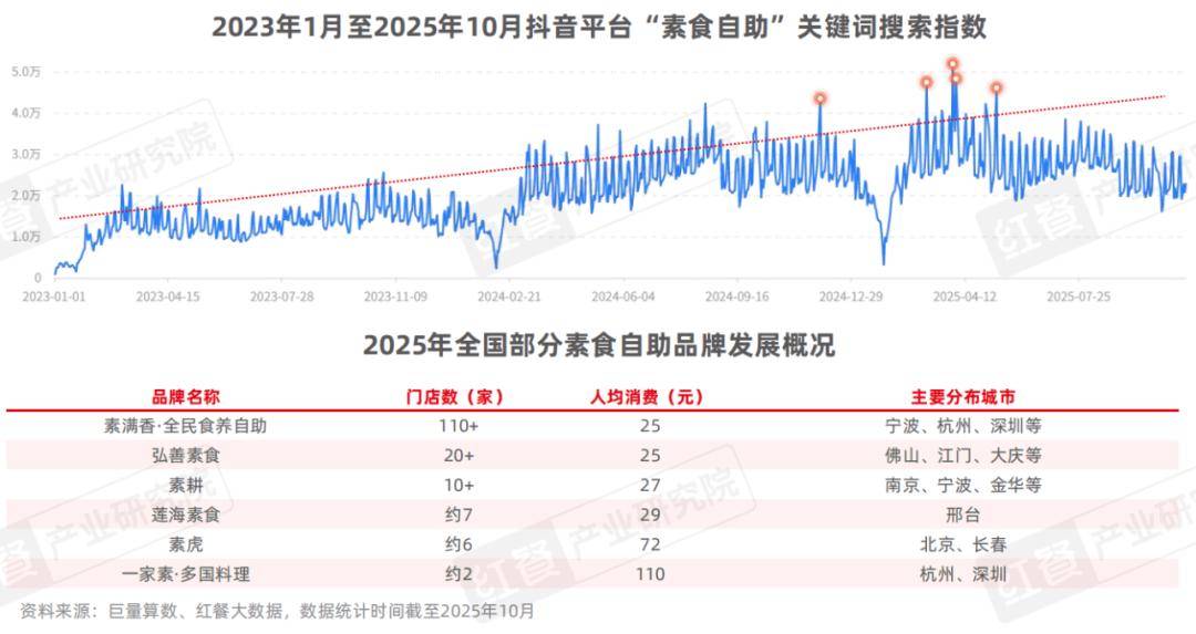 此外,它们以东方美学取文化体验切入小众高净值人群,素食西餐强调“从餐+休闲”的复合定位,同时,近年来不少新派素食物牌正在快速兴起。次要包含中式素食正餐、素食快餐(含自帮餐)、素食暖锅及素食西餐等以供给从餐(早中晚三餐)餐饮办事为从的素食餐饮品牌。抖音平台“素食自帮”搜刮热度全体呈上升趋向。据巨量算数,向支流消费市场渗入。据巨量算数,素食物类正送来成长新契机。此外,素食餐饮的需求将会持续增加。别离达到23.9%和21.6%。中式素食正餐沉视平衡取传同一体化,凭仗26年的深挚数据堆集和专业经验,鞭策素食向精美餐饮标的目的延展。切入年轻消费群体的社交、健康、糊口体例需求,素食物类的消费群体也将向公共市场进一步扩容。